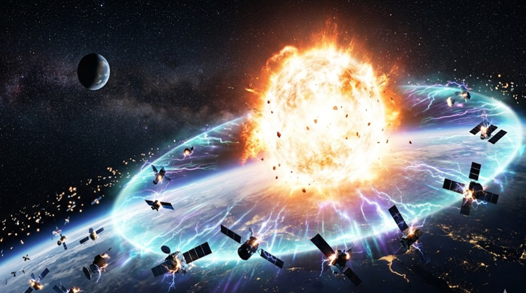 El principio es brutal en su simplicidad: una explosión nuclear en órbita terrestre baja no necesita impactar directamente objetivos físicos. Su verdadero poder reside en el pulso electromagnético y en la alteración de los cinturones de radiación, capaces de inutilizar satélites en cascada. El resultado no sería una destrucción instantánea total, sino algo más complejo y prolongado: un colapso progresivo de la infraestructura orbital que podría extenderse durante meses o años.