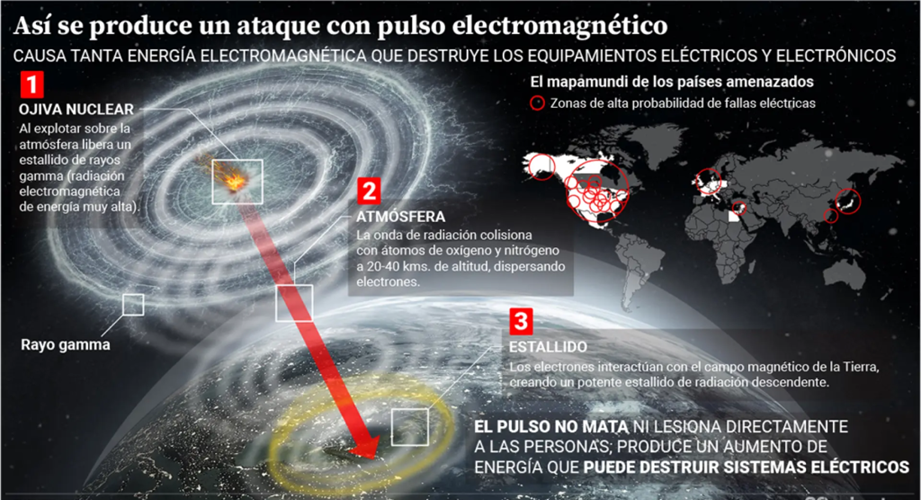 El núcleo del temor estratégico no es la explosión en sí, sino su efecto secundario dominante: el pulso electromagnético (EMP).