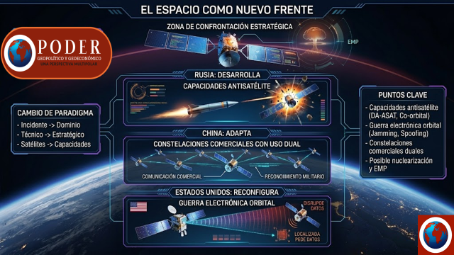 El espacio ha dejado de ser un entorno técnico para convertirse en un dominio de confrontación estratégica. La competencia ya no se limita a la colocación de satélites, sino que incluye:
